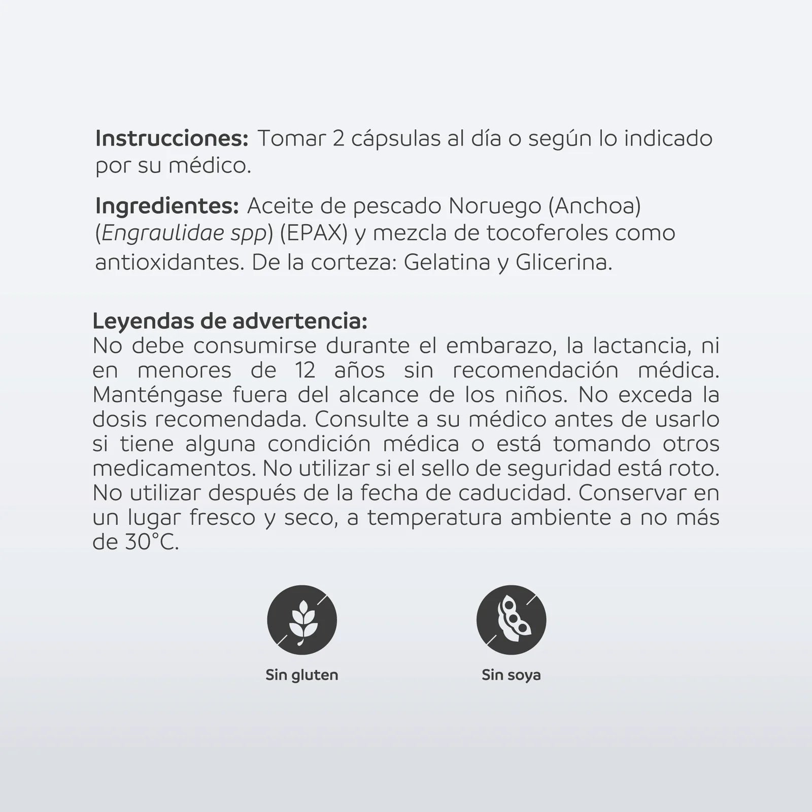 Cuida tu cuerpo y mente con Omega 3 Strong, un suplemento diseñado para brindarte los ácidos grasos esenciales que tu organismo necesita para funcionar al máximo. Su fórmula de alta concentración en EPA y DHA contribuye a un corazón fuerte, un cerebro activo y articulaciones flexibles.